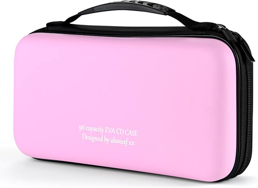 CD Case, 96 Capacity EVA Protective Blu-Ray DVD Case Portable Zipper CD Holder Disc Storage Organizer Wallet Bag for Car Home Travel (96 Capacity, Pink96)